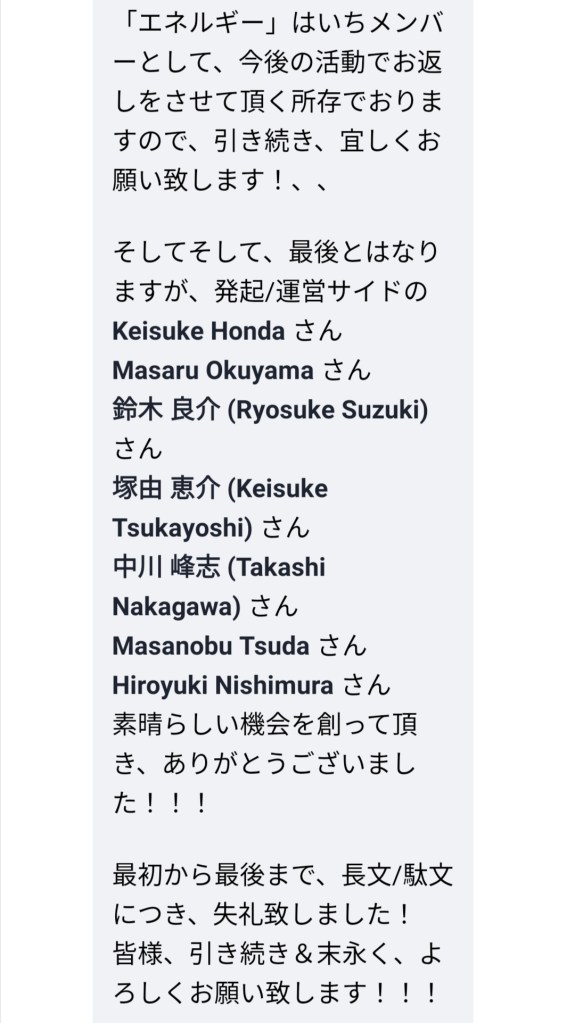 過去の経験から学んだこと、そしてONE TOKYOへの想いを長文で書き記されていました。