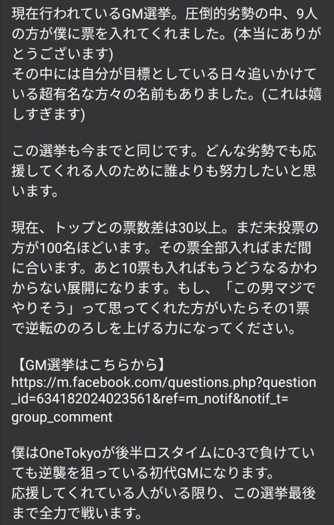 と言うことで、「ファミリー全員が燃えたGM選挙の裏側」をお伝えしていきたいと思います。