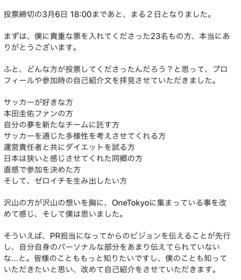🔹ONE TOKYOの選挙は参加者全員が熱い想いを込めている、投票率100%を目指したい、など実際に立候補をされた3人の言葉にはとても説得力がありますね😌