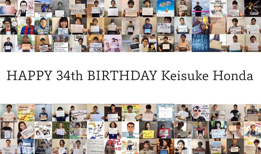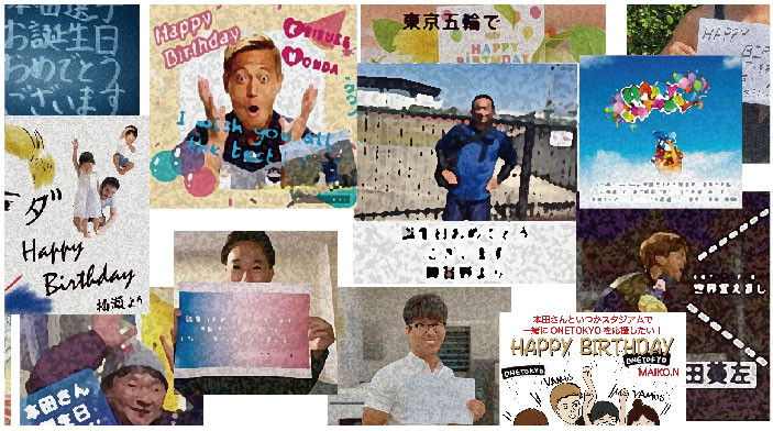 ご自分の写真、イラスト、文字メッセージなどバラエティに富んだ画像をひとつにまとめたものになります。 みなさんポーズ決めたりユニフォーム着たりメッセージに凝ったり、個性豊かでそれぞれが本田さんのお誕生日をお祝いする思いが伝わってきますね!