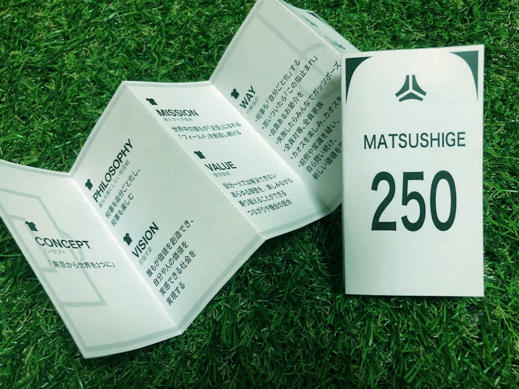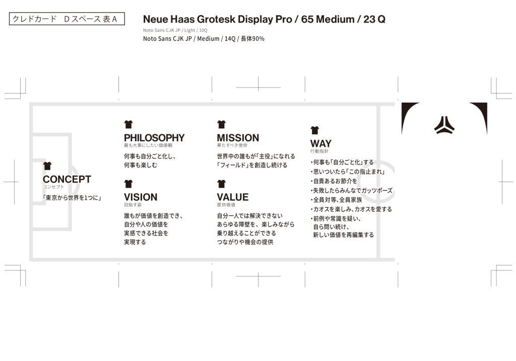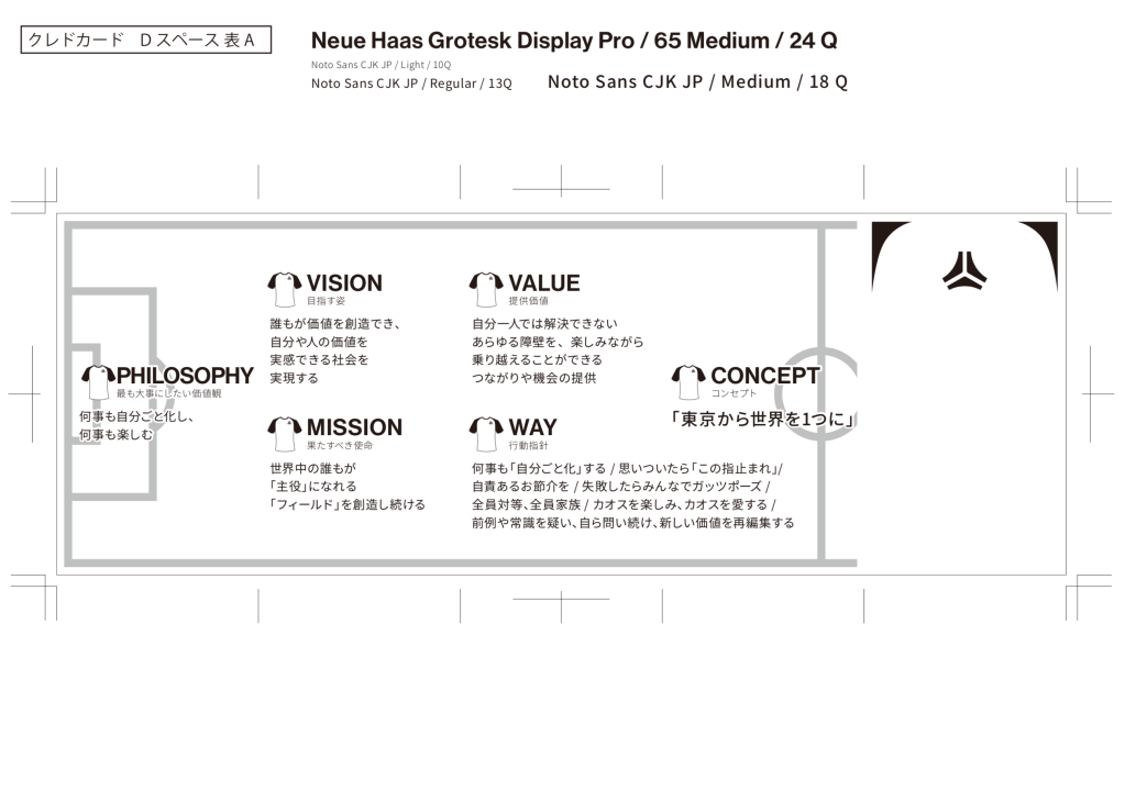 ピッチをデザインしそこにフォーメーション風にミッションやコンセプトをレイアウト。