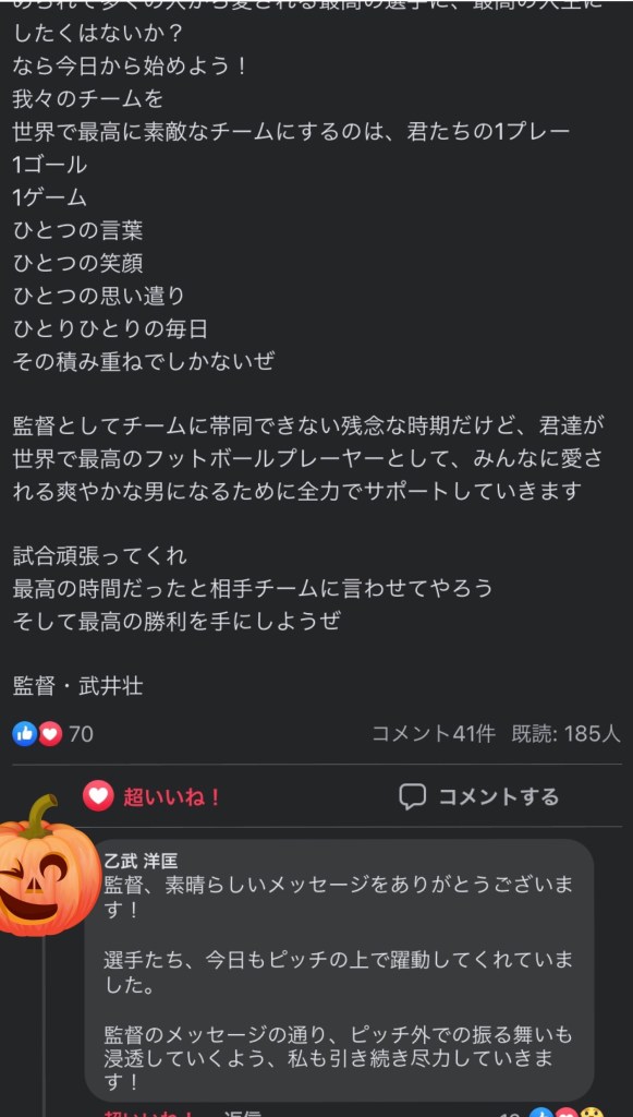 🔹この熱いメッセージは選手だけでなく、ファミリーの多くも自分ごとのように据えておりました。私もその一人で心に響きました。
