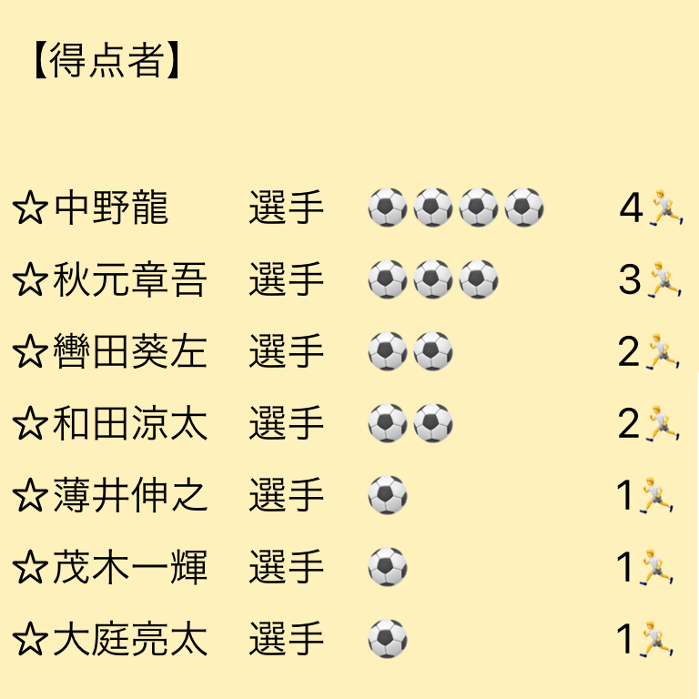 🗣応援ありがとうございました。なかなかこうゆうゲームを評価するのは難しいですが、自身としては得点することができて良かったです。仲間の助けもあり連携も良くなってきて、着実にゴールに近付いていると思います。ただ、まだまだ課題は山積みなので、1つずつ確実にクリアして、成長を積み重ねて行きたいです。サッカーできる環境に感謝して、次に向けて準備していきます。
