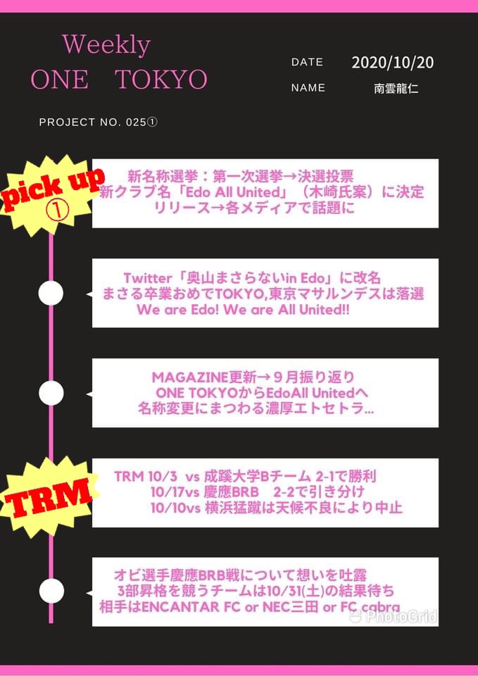 10月は『Edo All United』がスタートした月であり、これまで通りの熱量を保ったまま色々な事が進み続けた1ヶ月でした。