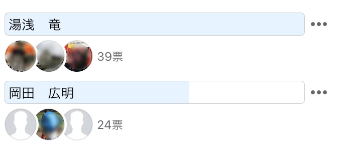 今回はなんとか頑張って欲しいと思いながらも 投票数は10票以上差が付いている。