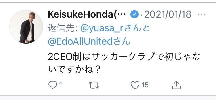 本田圭佑さんも2CEO制についてこんなツイートを↓