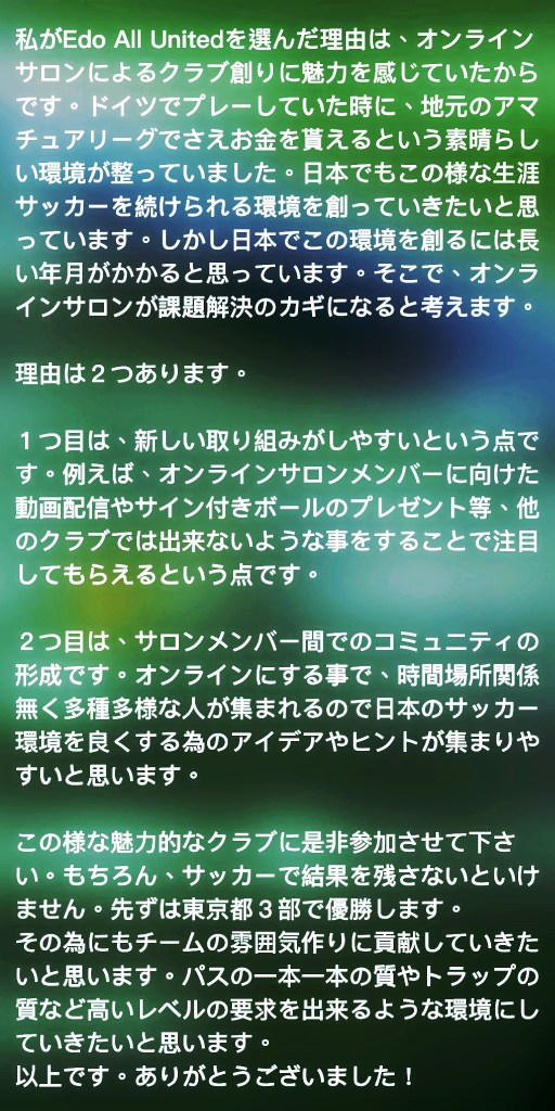 先ずは、Edo加入希望選手を募るところから始まりました。