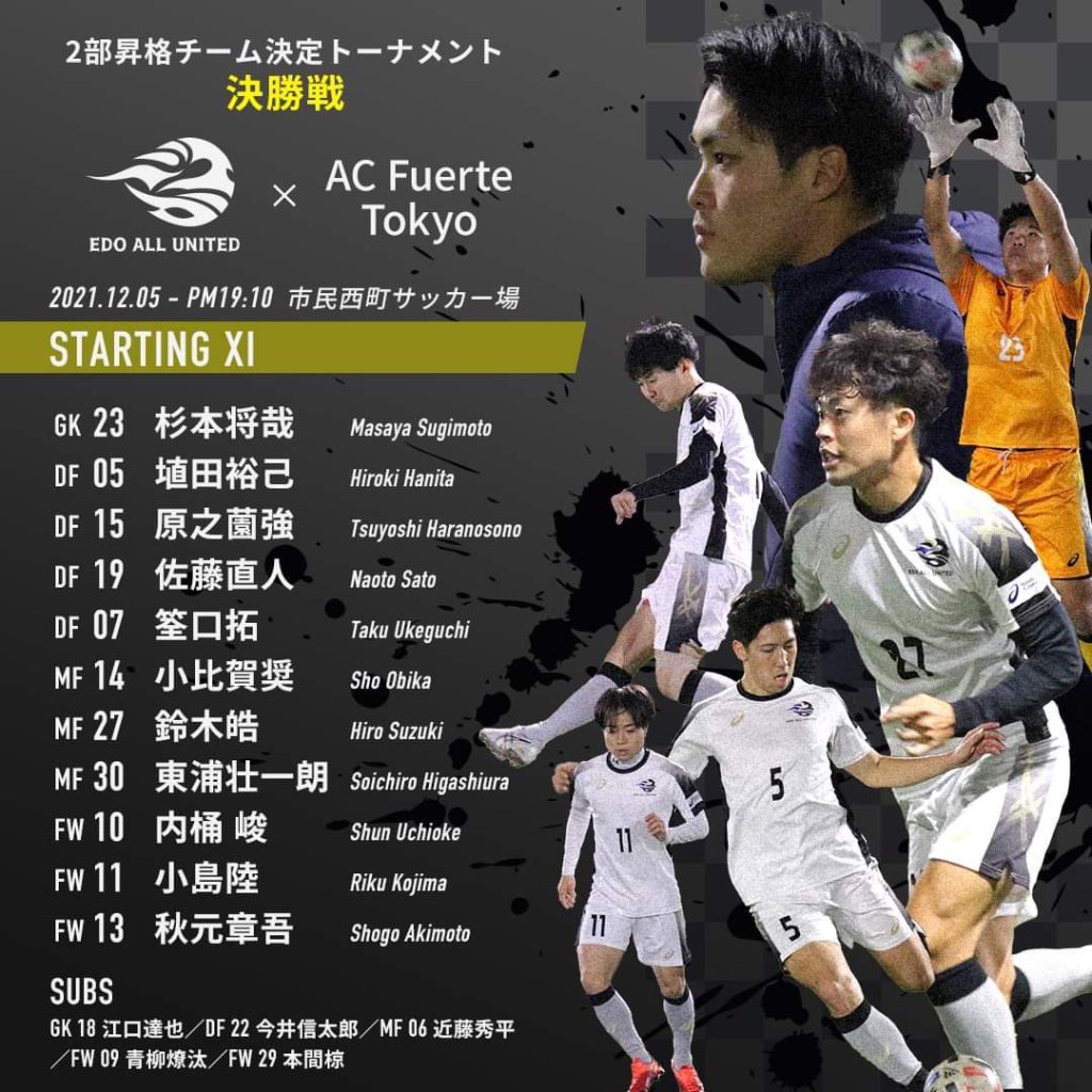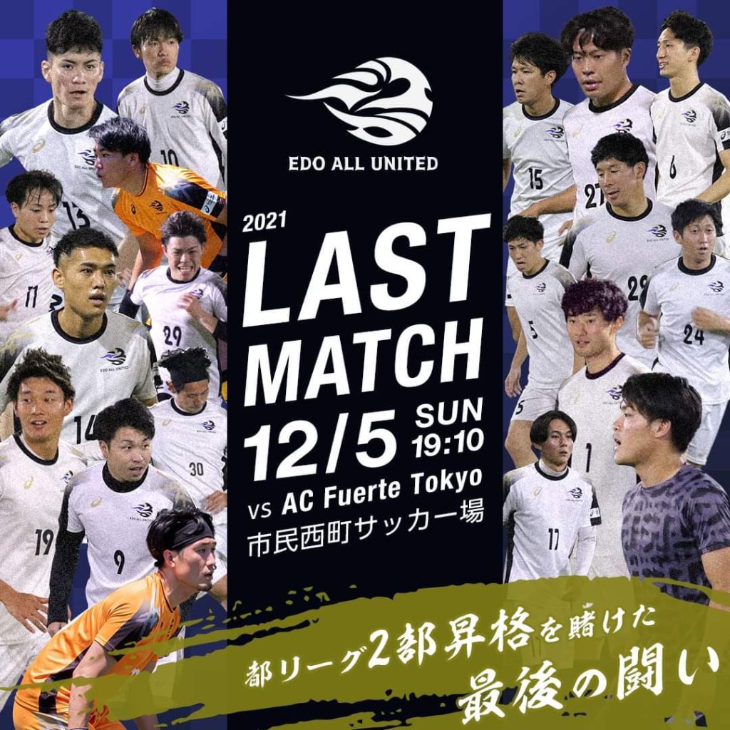 日頃より多くのサポートをいただきありがとうございます。この二部リーグ昇格に向けた大事な一戦は、僕のEdoでの最後の試合でもありました。2年間運営でも選手としても、想いを込めてこのクラブを現場から創ってきた分、とても感慨深いものになりました。結果は勝利することができ、得点にも絡むことができましたが、それも後輩たちにお膳立てしてもらったようなそんな気持ちでいます。今は安心感でいっぱいです。