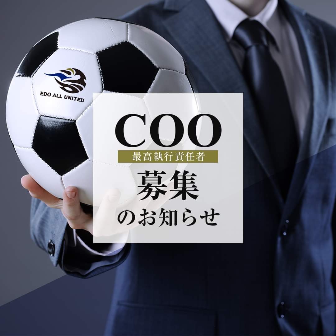 この度、Edo All United では あらゆる庶務を執行し、サッカークラブとしてEDOを前に進められる「COO -最高執行機関責任者」の募集をする事となりましたので、募集要項等、併せてお知らせ致します。【有償での採 … 続きを読む 【有償】COO -最高執行機関責任者-を募集致します‼️