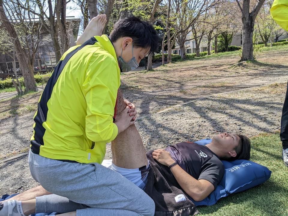 テーピング・カウンセリング・マッサージの準備。怪我している選手にリハビリの仕方指導。