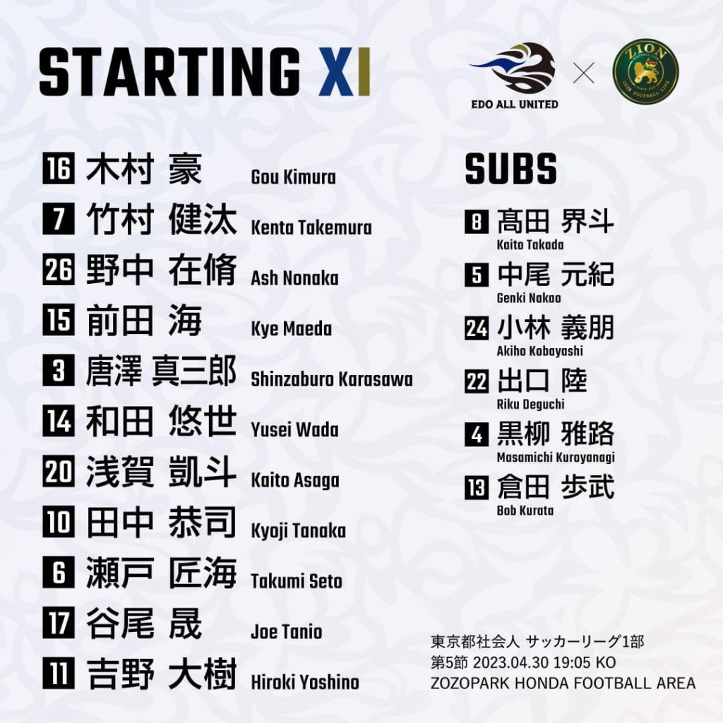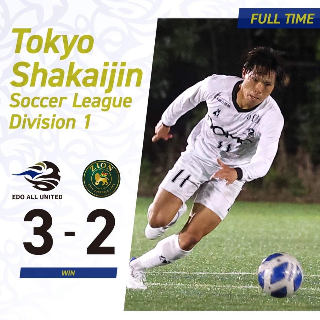 東京都リーグ第5節。3連戦の2戦目の対戦相手はZIONさん。昨シーズンEDOで活躍した選手も所属し、元Jリーガーも多数所属するパワフルな攻撃が特徴のクラブとの対戦となりました。