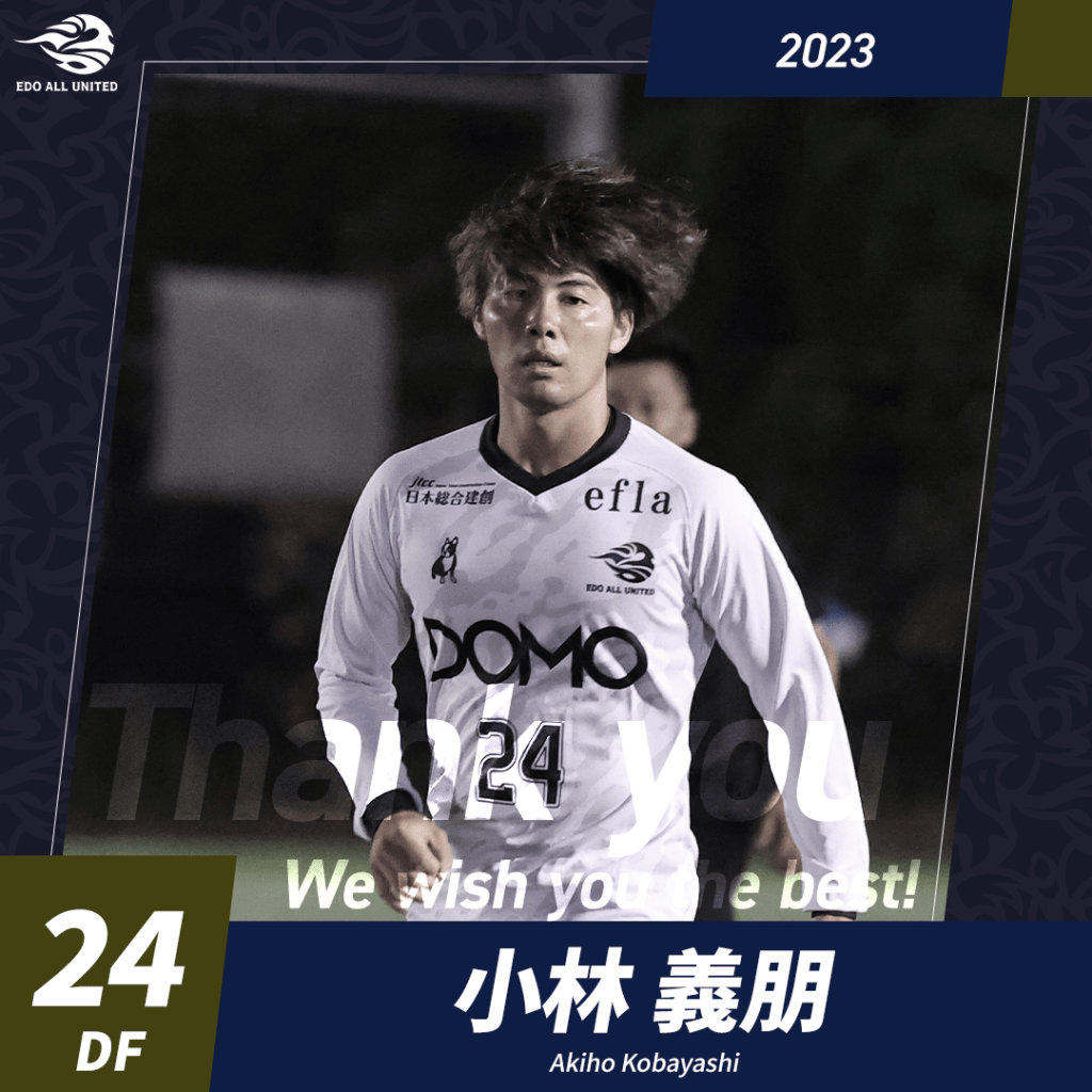 このたび、小林義朋 選手が契約満了に伴い、今シーズン限りでチームを離れることとなりましたので、お知らせいたします。
