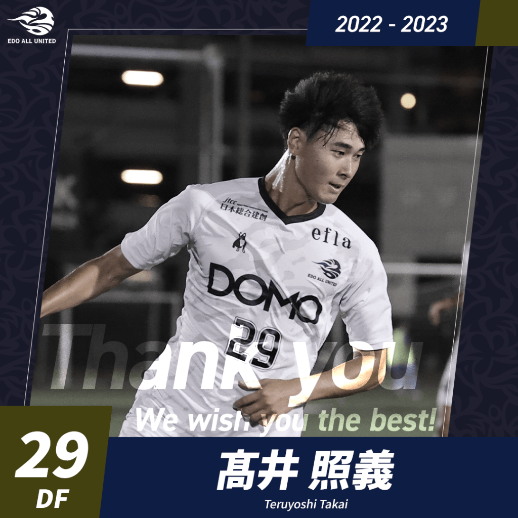 このたび、髙井照義選手が今シーズン限りでチームを離れることとなりましたので、お知らせいたします。