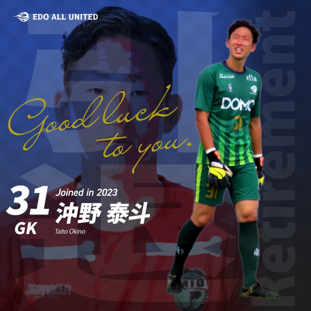 このたび、沖野 泰斗 選手が2023シーズンをもって現役を引退することになりましたのでお知らせいたします。